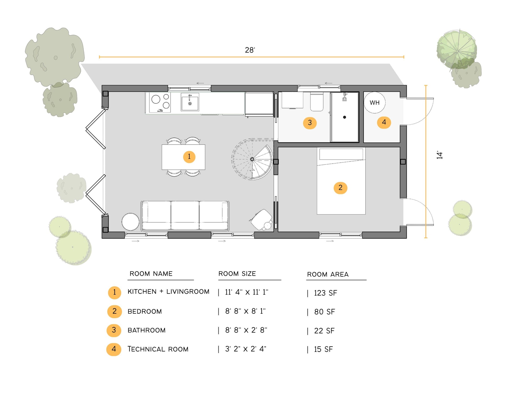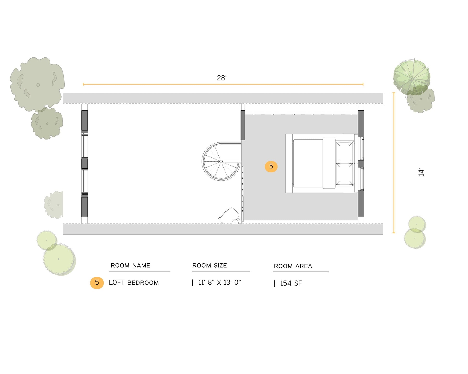 Floating Tiny House Plan – Sleeping Loft | 14′ x 28′ (392 sq ft)
