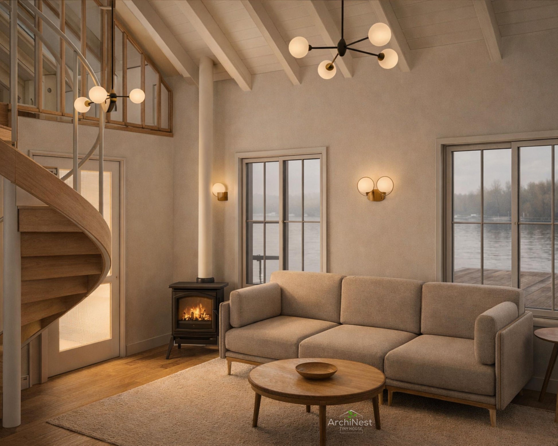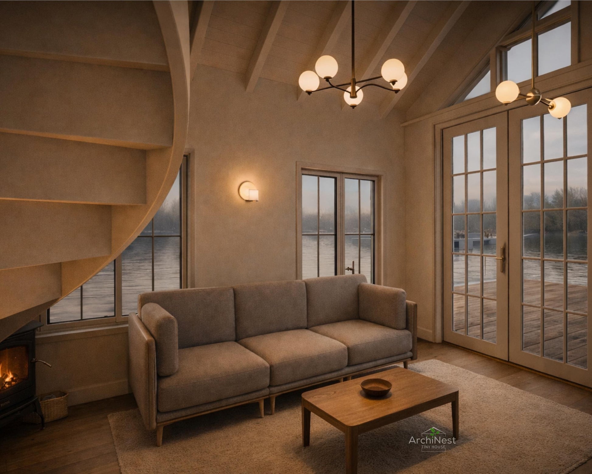 This modern floating tiny house is a carefully designed architect-led waterfront home, created for calm living on the water. Minimal, warm, and timeless — this design prioritizes spatial clarity, natural light, and honest materials, making it ideal for marinas, rivers, and floating communities. Designed as a permanent floating residence, the project is HOA-conscious, modest in scale, and refined in detail.
