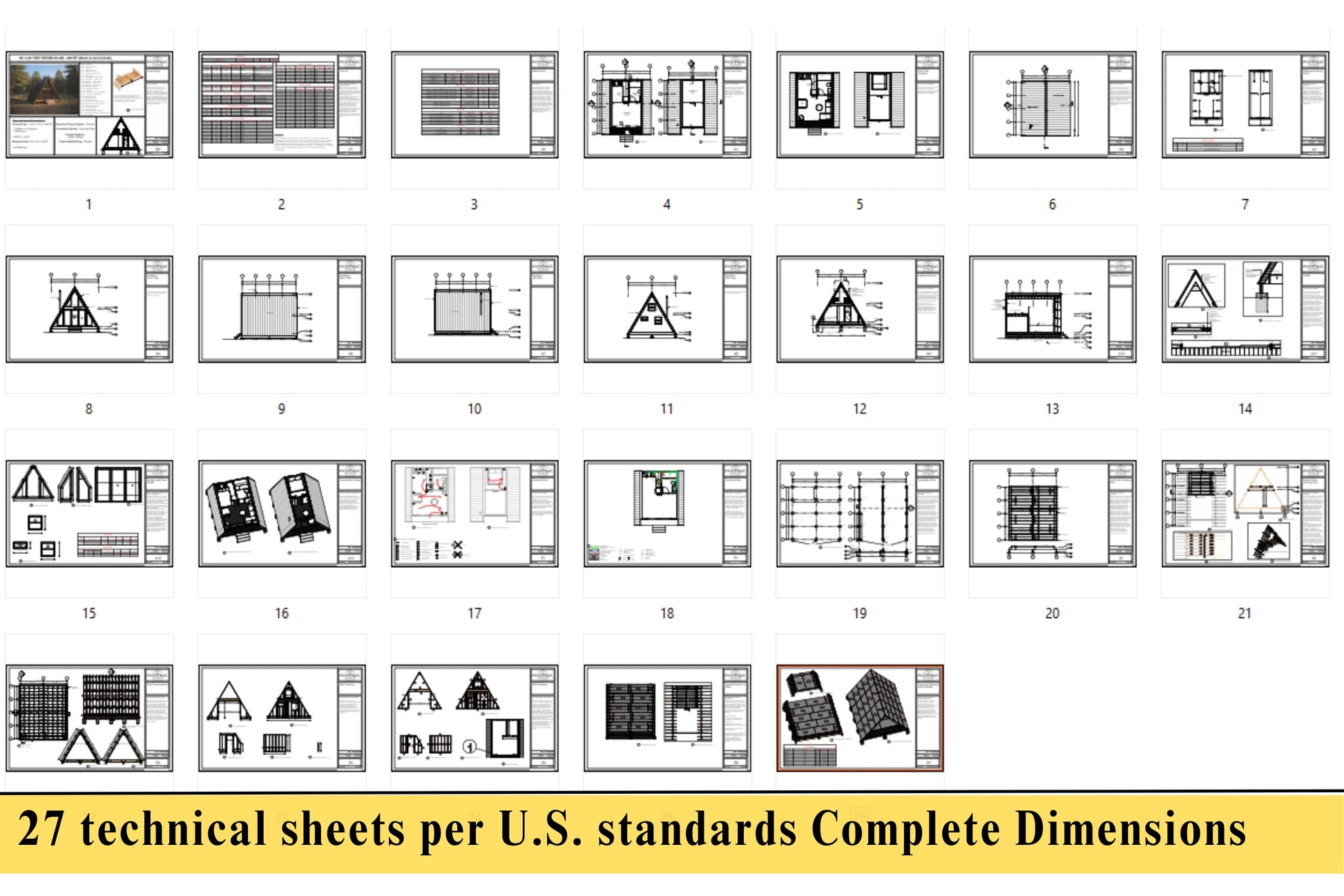 Each purchase includes a complete set of architectural drawings prepared for real construction.